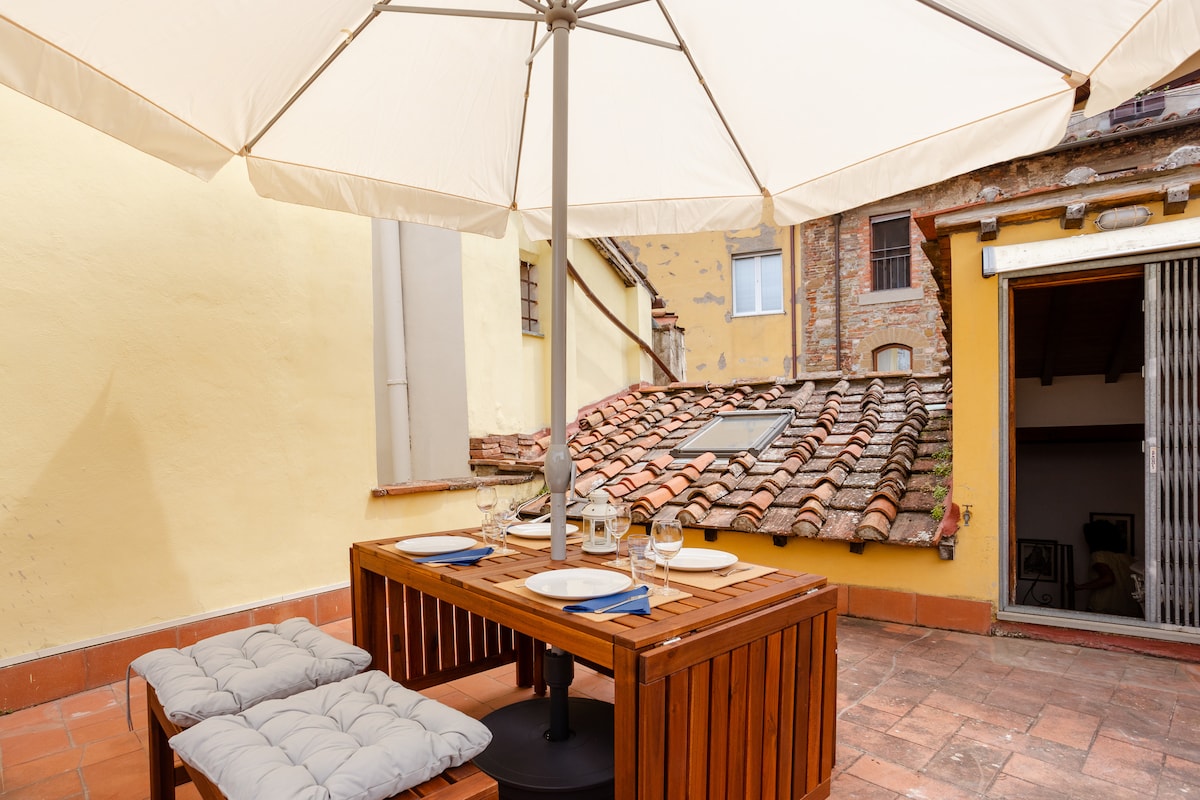 Open the large glass doors to let the scent of Tuscan herbs in; step onto the terrace and uncork a Sangiovese wine to soak in the stunning views of the Duomo. Nestled on the roofs of the authentic Santa Croce and Sant'Ambrogio neighborhoods, this romantic rooftop flat features brand-new appliances, antique and handcrafted furniture, two bathrooms, and all the amenities you need for the perfect base to explore Firenze.