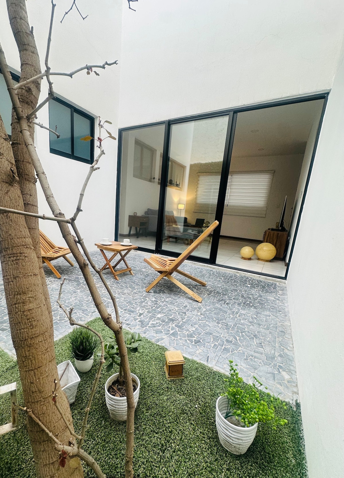 我們的公寓地理位置優越,非常方便您計劃旅程! 你將入住距離Cholula金字塔半個街區的地方,在一個小建築內,內有我們的Gru Grú餐廳和第二間公寓。 您可以享受屋頂花園,配有烤架和吊床,以及一個時尚而美妙的地方。 位於二樓。 停車場位於街道上或鄰居每晚收費$ 50。 寵物須繳付住宿費用