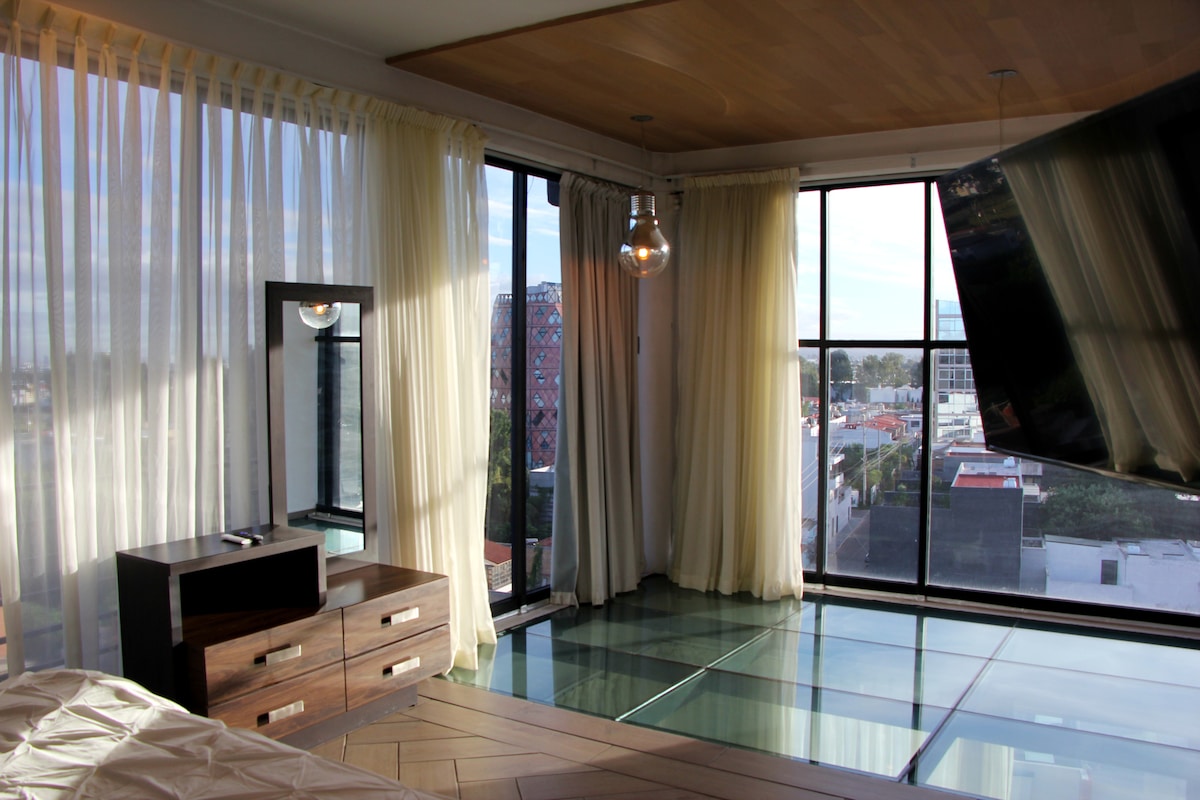 如果您正在尋找室內設計良好且沒有噪音的地方,可以短暫或長期度過,這是您最好的選擇, Zapotecas山和Popocatépetl會隨時提醒您。 PausaYoga在Loft 1 ,您將獲得50%的折扣,查看他們的IG。 1輛車的停車位、閉路電視和帶燒烤的露臺。 該區域有商店,距離市中心和金字塔、寵物友好、Netflix和100Mb Wifi約8個街區。 對於超過10天的住宿,我們每週提供免費深度清潔服務。