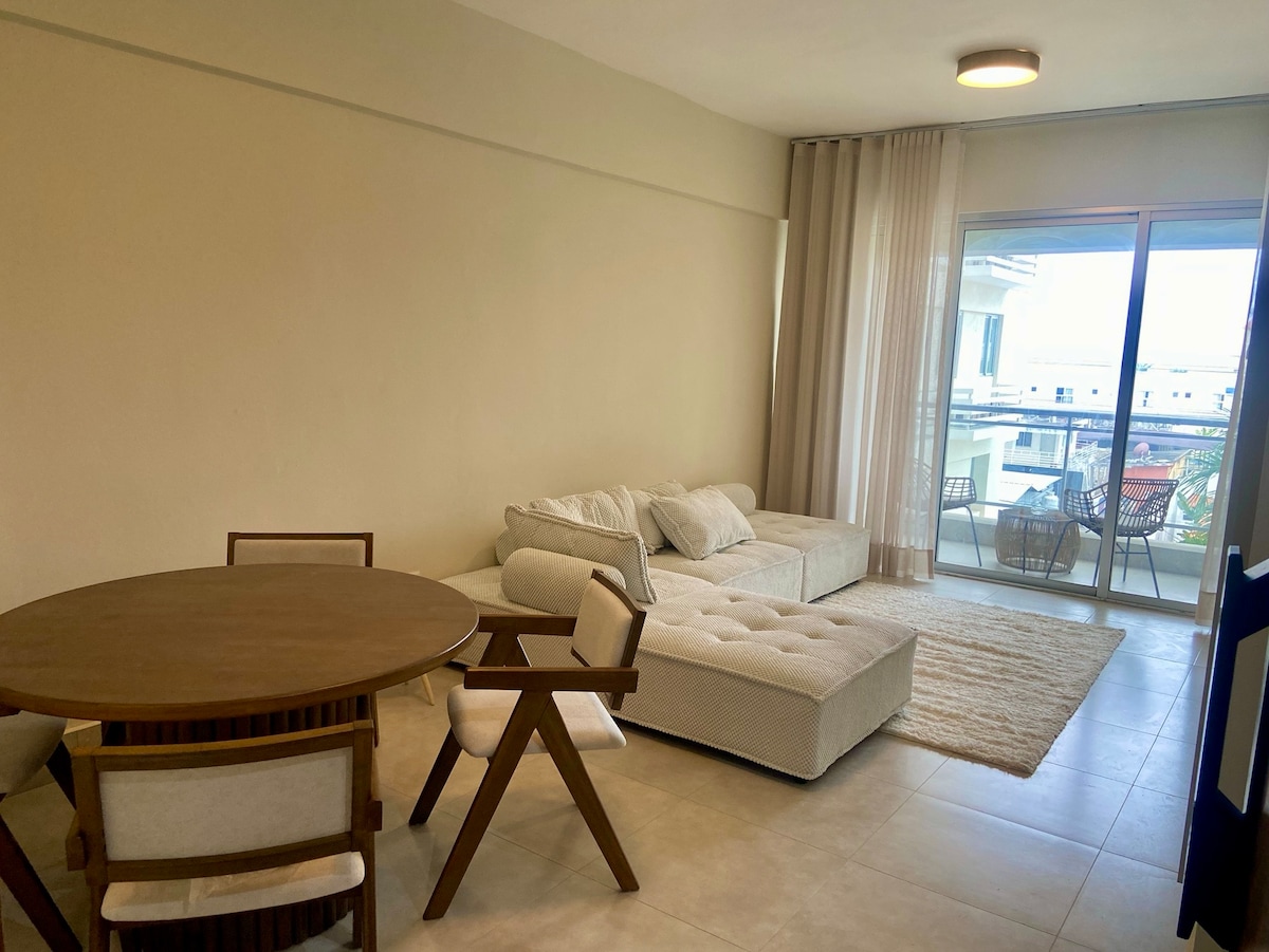 Bpca chica, Santo Domingo, Republica Dominicana. 現代化和全新的公寓,地理位置優越,可前往不同種類的餐廳、Serca加油站、機場、超市、快餐店。 它有一個房間,家具齊全的浴室,美麗的花園景觀,起居室區域,客廳和房間有空調。 它有一個漂亮的陽臺,可欣賞美麗的花園景觀,包括泳池、健身房、停車位