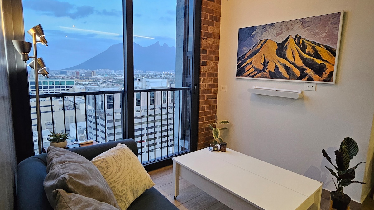 入住這間位於蒙特雷市中心的Loft ,配備全新現代化設施,讓您享受愉快的住宿體驗,其優越的地理位置可讓您快速前往Sultana del Norte的主要景點。 位於19樓,您可以欣賞Cerro de la Silla的美妙全景,其溫馨的氛圍將使您的住宿體驗極佳。