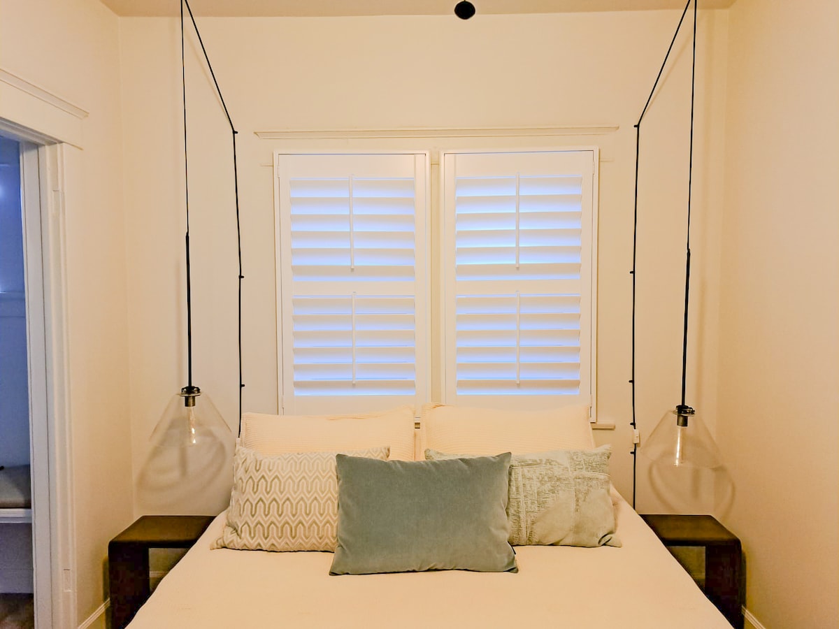 享受這間精心設計的私人、精心設計和舒適的二樓公寓。 我們位於長灘Retro Row中心地帶,地理位置無與倫比。 這間單臥室非常適合度假、在家工作或放鬆身心! 明亮舒適的起居區,配有窗戶空調,可保持涼爽,一張沙發牀可供一人睡沙發。 部分設備與服務: *帶密碼的獨立入口 *全套廚房和洗衣 房*高速WiFi *距離海灘半英裏 *步行即可抵達第四街商店、時尚餐廳等!