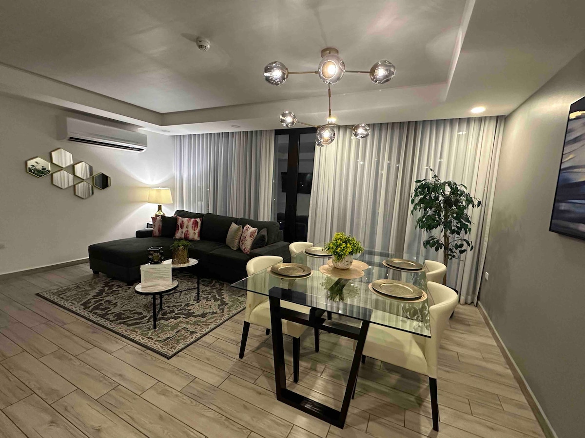 Ya sea tu viaje de negocios o placer, ten por seguro que el comfort y la elegancia de este apartamento te sorprenderá! Podrás disfrutar de la zona de piscina, gimnasio y sky roof que te permitirán disfrutar de una estadía inolvidable. Contamos con generador de energía que respalda totalmente ante apagones eléctricos. Cuenta con dos parqueos gratuitos en la zona mas segura de la ciudad. ¡Te esperamos! Puede Contactarnos al número 8979-5505 para cualquier otra duda!