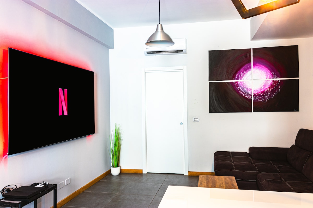 位於天使聖母教堂美麗庭院內的歷史建築中,距離博多尼廣場和城市主要景點僅幾步之遙。我們的 80 平方公尺公寓提供一間臥室、一間寬敞的客廳、一張沙發床和一臺 55 吋智慧電視。廚房設備齊全,整個房源都有 Alexa 喇叭,可享受完整體的多媒體體驗。