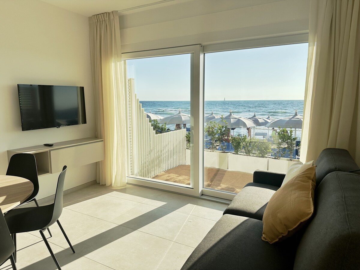 在一樓,入口露台俯瞰大海,您可以在一年中的任何時候享受聖文森佐海的氣候。 每個地方都包括佛羅里達州海灘服務。 沙灘站設有太陽傘和兩張日光浴躺椅。 它包括一間配有廚房和梳化床的客廳、兩間配有法式床(140厘米)的睡房和兩間浴室。 獨特之處在於第二間房間完全獨立,並有獨立入口。