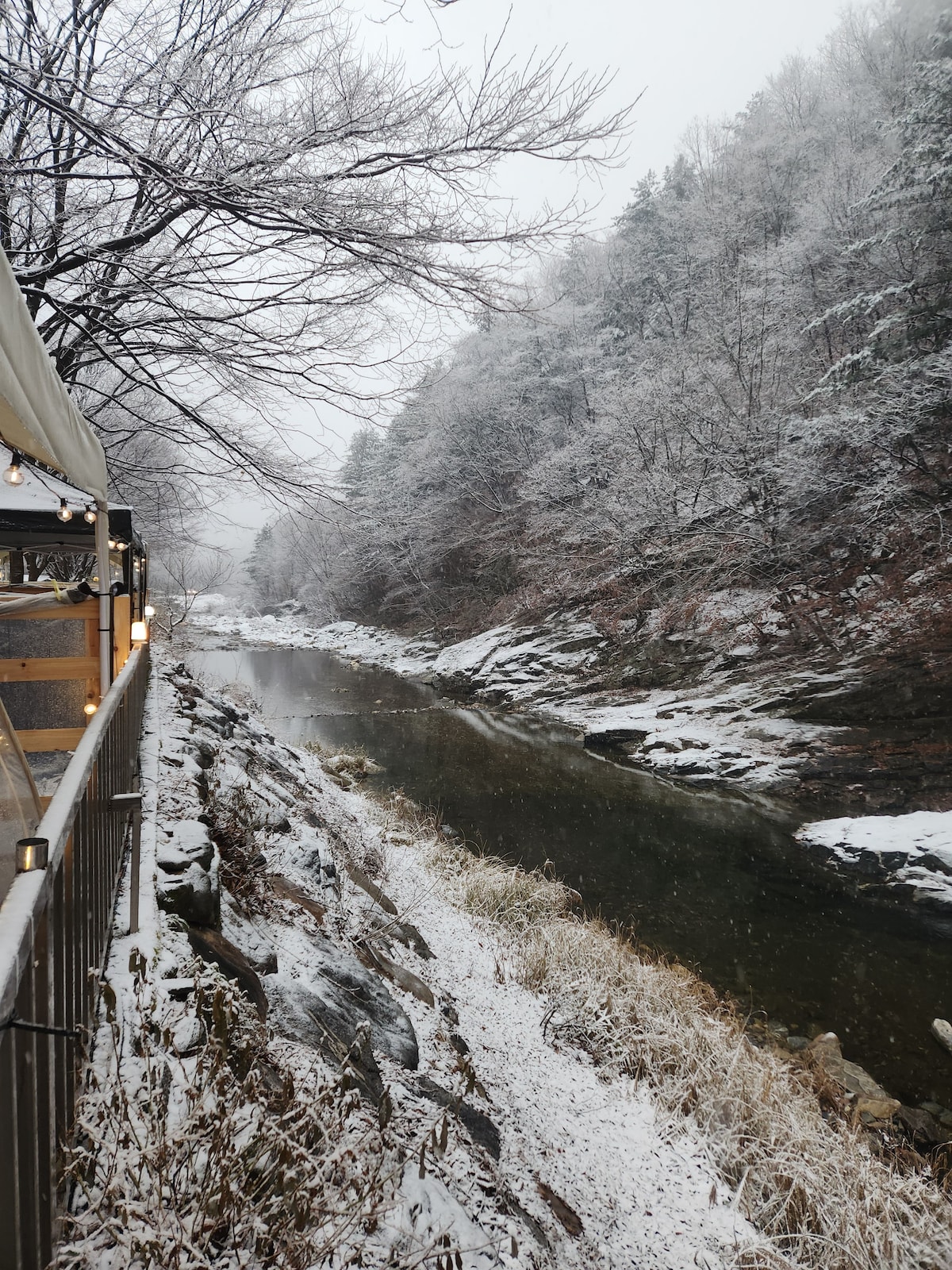 春川天空夢想之家是沿河騎單車、散步、欣賞風景和療癒身心的好地方,因為它毗鄰Jiameungso單車道(春季步道4路線)上的Gyeongchulchong Tower。 *特色:現代韓屋,您可以私下放鬆身心。私人住宿。 *地點:從春川站乘坐計程車約10-15分鐘。 *設施:Seochuncheon Hanaro Mart的新Maejji分店距離這裡僅1分鐘路程,因此非常適合購物。 *燒烤:可免費租用立式電烤架(倉庫咖啡廳內)或戶外燒烤架。 *準備:不提供木炭和網絲,您必須直接從街對面的Hanaro Mart購買。 *卡拉OK:晚上8點前可用,以防止噪音投訴。 * 2輛單車。單車打氣筒。自用。 *服務:膠囊咖啡和杯麵服務。 *注意:河流很近,所以夏天有很多昆蟲。 建議進出時關門,晚上放下百葉窗或關燈。