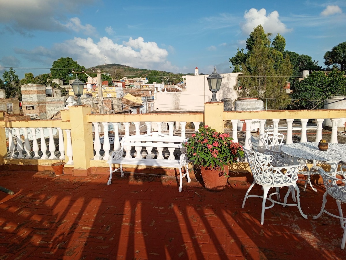這是一棟位於市中心的折中主義風格房屋,距離特立尼達歷史中心僅300公尺,是您度過難忘假期的理想之地,讓您有賓至如歸的感覺。 獨立房間,配有獨立浴室、空調、冰箱和露臺。 提供美食服務、洗衣、計程車、遊覽、古巴雞尾酒。 從露台眺望台可欣賞山景、海景和城市歷史古蹟。