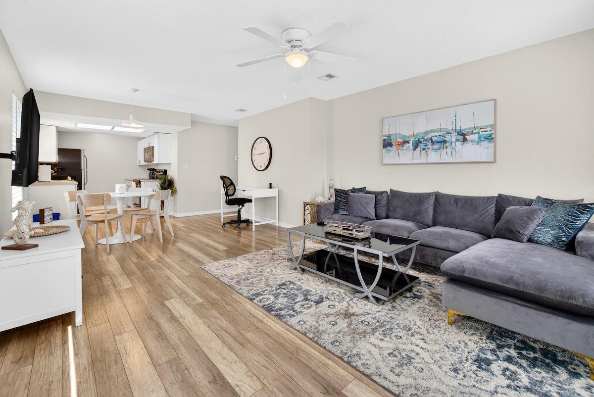 全新改造的海灘2臥室度假屋!位於一個非常短的街區,沿著棕櫚樹小徑步行即可抵達印度岩石海灘(Indian Rocks Beach)的糖果沙灘,對面是一個美麗的公園! 在後面,您會發現一個大型加熱泳池(目前為90°!),配有充足的躺椅、餐桌、新的Weber烤肉架、火坑、泳池浮排等。為了讓您的旅程盡可能輕鬆,我們為您提供所有海灘需求、毛巾、雨傘、海灘椅等。