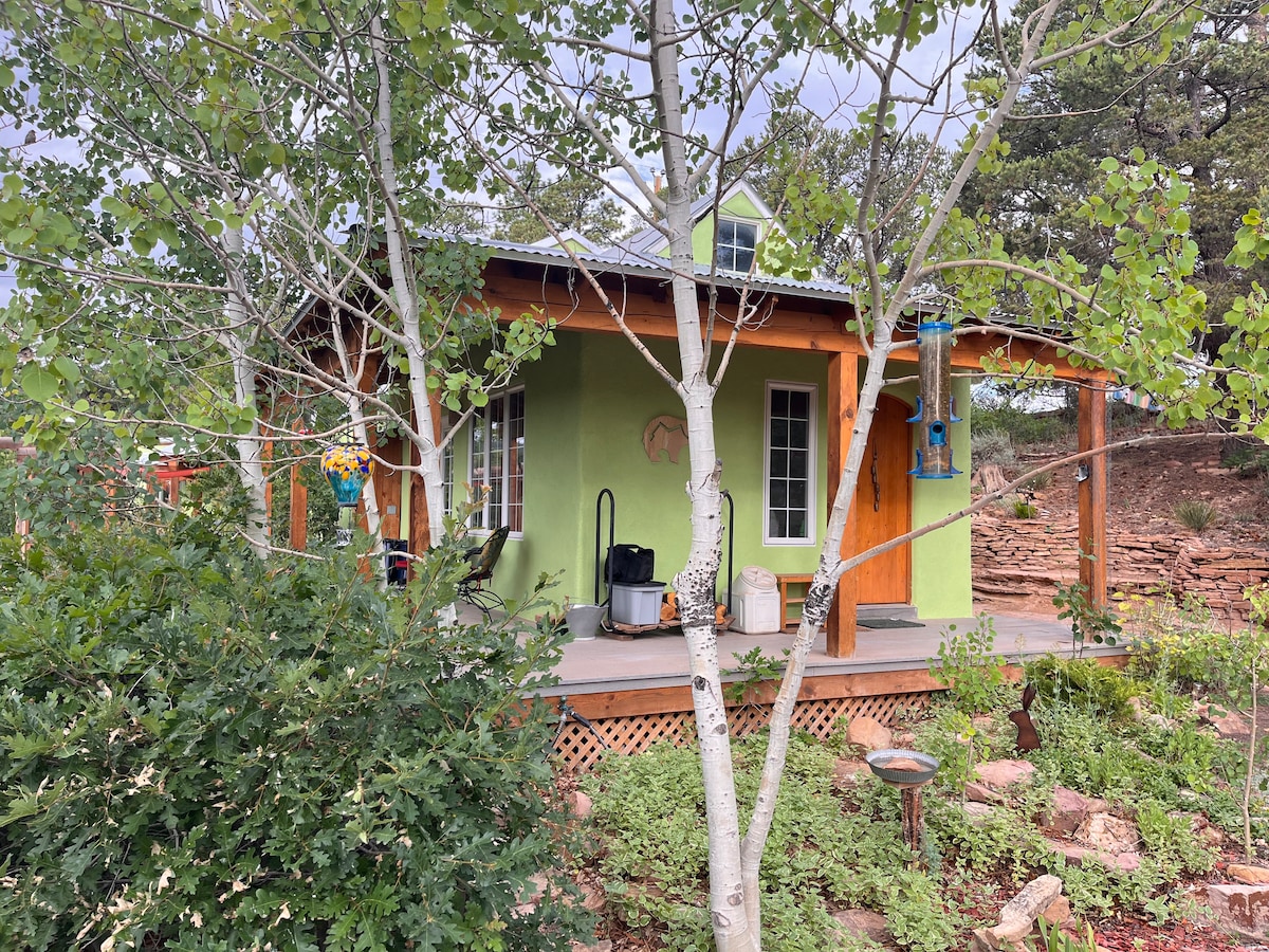 位於Jemez Springs村中心的舒適2人客用住房。步行即可抵達溫泉、歷史悠久的浴室、藝術畫廊、每週農夫市集和餐廳。光線充足的房間可欣賞高原景觀。客用住房後面有一條小型環形自然步道,有安靜的地方可供坐下、冥想、寫作或繪畫。您的房東住在房源內的歷史悠久的房屋(曾經是美國原住民作家N. Scott Momaday ) ,需要時可隨時找到。