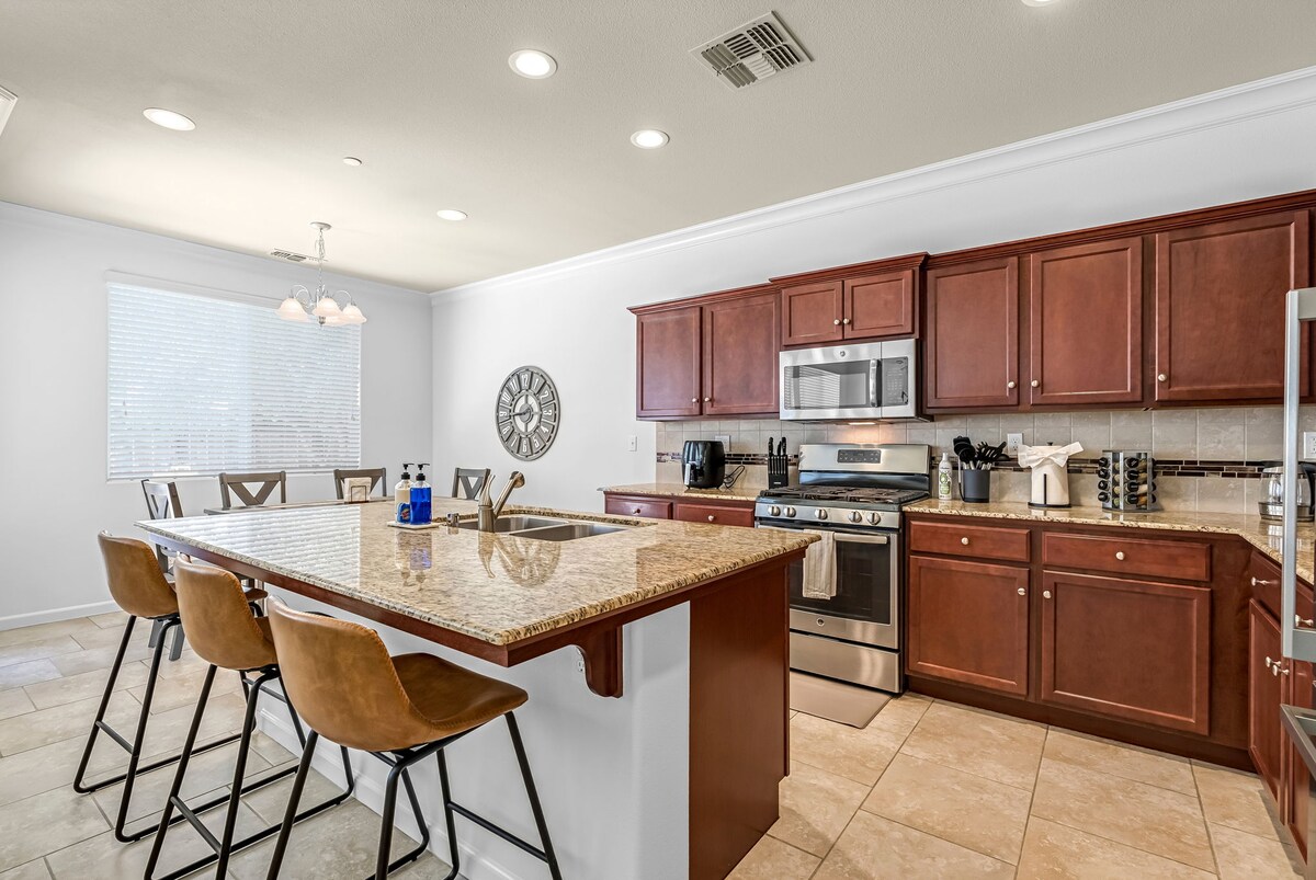這間 3 臥室房源位於安靜的新開發區域。這是一間全新的房子,配有非常好的家具和舒適的床/沙發。這棟房子曾經是一棟模型房屋,因此有許多升級功能,並以風格裝飾。 *此房源適用於整套房源(車庫除外)。您將獨自享有房源,與家人/朋友一起入住。您不必與其他任何人共用公共區域。* *請注意,我們有禁止派對/禁止吸煙/禁止攜帶寵物的政策。*