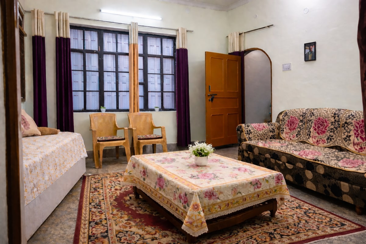 Enjoy a comfortable stay in our spacious 2-bedroom home in Nainital, located just 5 minutes from the lake. • Entire private 2BHK house • Spacious living room • Fully equipped kitchen • On-site parking available • Rooftop area with barbecue facility • Caretaker available for assistance Perfect for families, couples, and small groups looking for a peaceful and convenient stay in the hills.