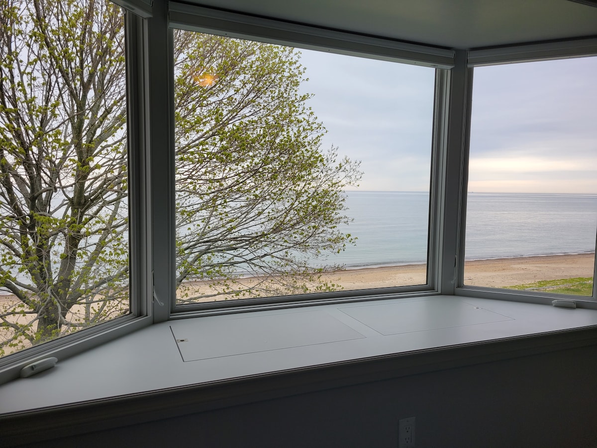 冬季長期住宿特別優惠:28日以上 在我們的小屋內,距離Huron湖的沙灘僅幾步之遙。 幾乎每個房間都能欣賞到湖景。 在保持其古老魅韻的同時,更新以添加現代便利設施。 您可以使用整個後院,配有火坑和舒適的座位,在海灘上度過一天後放鬆身心。 設備與服務包括WiFi、電視、洗衣機/乾衣機、設備齊全的廚房和瓦斯烤架。 主臥室有標準雙人牀,客廳有帶腳輪的沙發牀。