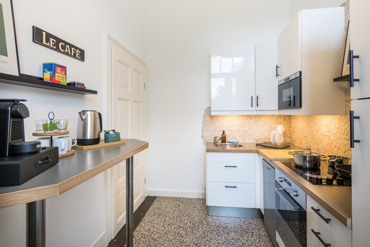 我們的公寓(約 50 平方公尺)現代且舒適,位於薩爾布呂肯州府的中心。公寓位於一棟多戶住宅的高層地下室。 公寓是城市中的一片小綠洲,有陽臺,可俯瞰綠色的庭院。配備現代化電器、冰箱(包括冷凍室)和 Nespresso 咖啡機的精美內置廚房。舒適的加大尺寸彈簧床(2x2公尺)和當然快速的網路(WiFi)可供使用。