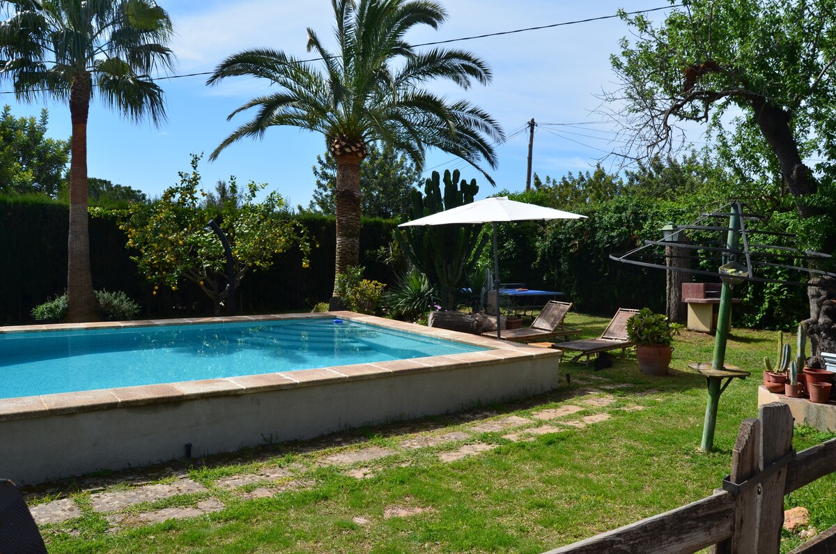 這是一棟迷人而私密的房屋,距離帕爾馬10分鐘車程,有7000平方公尺的花園、游泳池、戶外按摩池和美麗的花園。房源內有 3 間臥室和 2 間浴室。大露臺可俯瞰花園、門廊、壁爐、烤肉區、空調和暖氣……非常寬敞舒適。距離帕爾馬市中心、機場和海灘 7 公里的安靜區域。距離超市 1 公里。非常適合休息、島上遊覽、騎自行車等...我們喜歡寵物,所以帶上它們一起來吧 ;-)