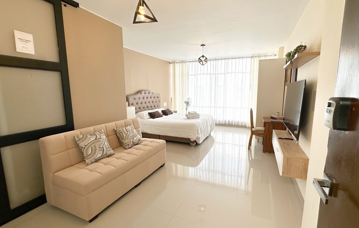 明亮舒適的單間公寓,步行15分鐘即可抵達阿雷基帕的歷史中心。 在陽光明媚的日子,從陽台欣賞美景,並享受所有必需品,讓您放鬆身心:私人浴室、24小時熱水和快速Wi-Fi。 大樓提供電梯、小露台和視頻保安,讓您舒適安心。