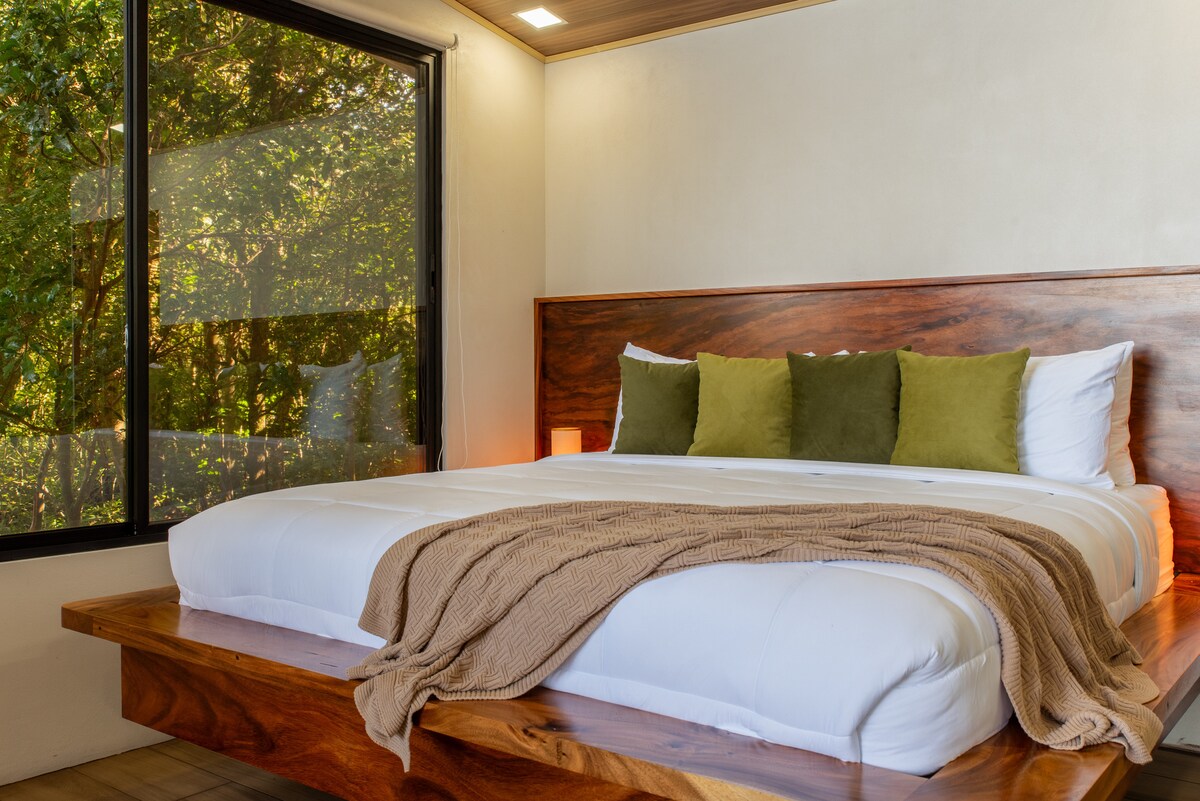 被Forbes和Afar評為哥斯達黎加十大Airbnb之一! 這間現代木架小屋採用時尚設計,並融入中世紀風格,絕對會令你著迷。 沉浸在蒙特維爾德雲霧森林中,你會感到與世隔絕,但距離貝爾馬爾酒店和主要便利設施只有幾分鐘路程。 落地窗讓自然光線充滿空間,並可欣賞太平洋的美景。 私人露台、獨立浴缸、快速WiFi和現代電器令住宿體驗更加完美