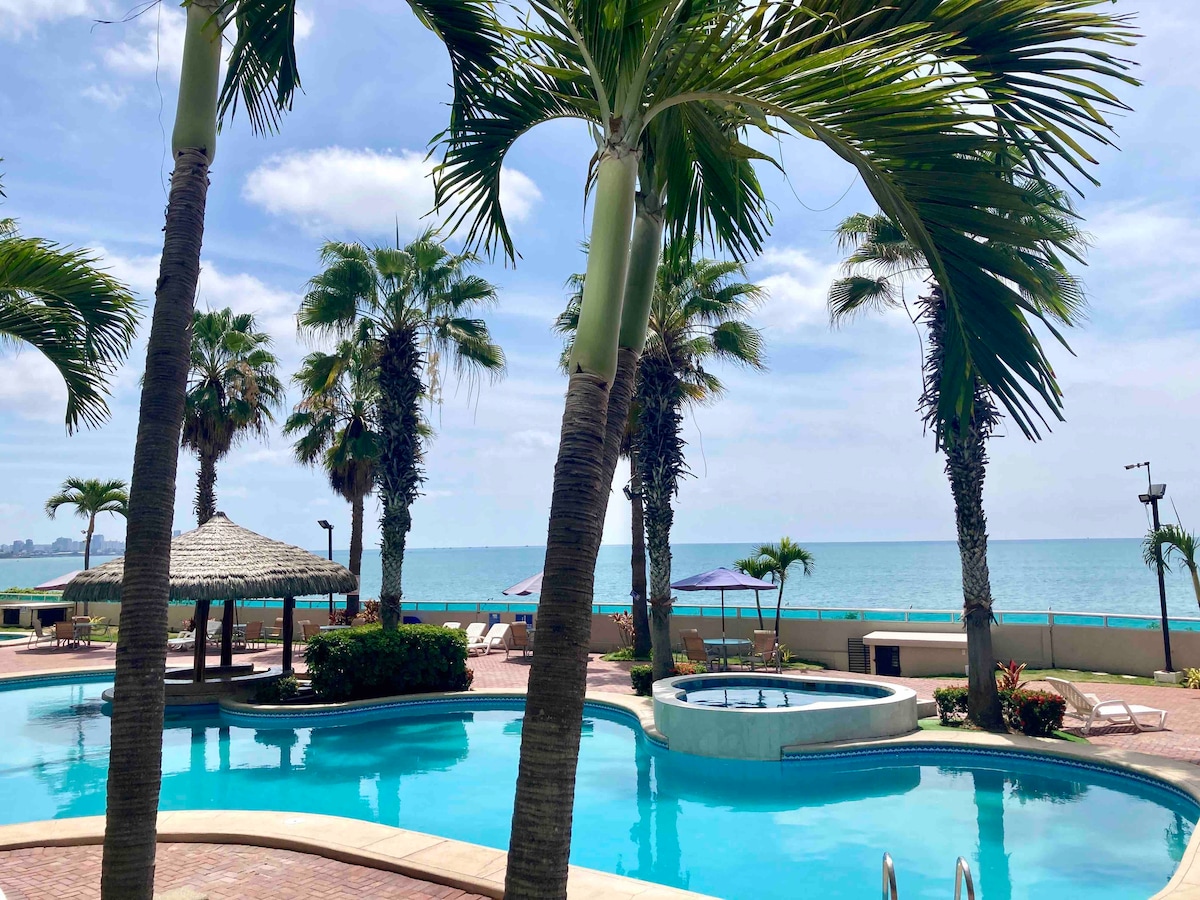 Apartamento ubicado en el Hotel Colon de Salinas. - Cuarto con Smart TV de 75 pulgadas y Netflix - 2 baños con ducha - Balcón con vista directa al mar - Sala - Cocina - Café y cafetera - Parqueo privado - Seguridad 24 horas - 3 piscinas - Justo al comienzo de El Malecón - Servicio de hotel (Restaurante, spa, gimnasio, room service). Estos servicios son independientes del apartamento. *Solo se permiten 2 huéspedes por noche* *Por favor tener cuidado con la hamaca*