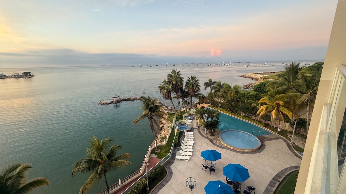 在這個獨特且適合家庭入住的住宿中創造難忘的回憶。 舒適安全,新裝修的公寓,位於公寓的五樓,可欣賞美麗的海景和泳池區域。 公寓有2間臥室、2間全功能浴室、沙發牀、私人停車場、Wi-Fi、2臺帶串流的平板電視、洗衣機烘乾機、空調、電梯。 在共用區域有一個美麗的泳池區域、按摩浴缸、烤架、健身房、帶臺球和乒乓球的社交區域。