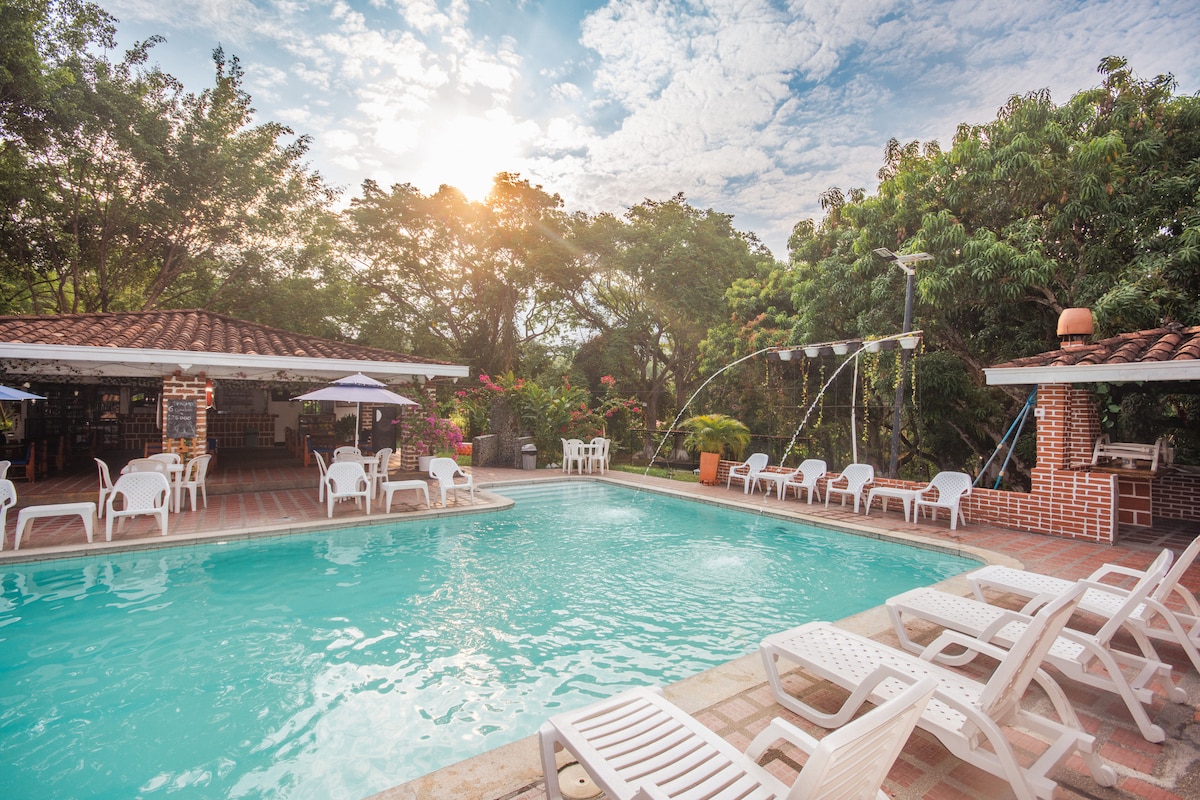 Ivanna Hotel Campestre位於Santa Fe de Antioquia ,是您放鬆、玩樂和大自然的理想度假勝地。 它提供舒適的房間、兩個帶水力按摩的遊泳池、一個帶迷你水上公園的兒童泳池、兩個熱水浴缸、一個土耳其浴缸和一條擁有美麗景觀的生態步道。 享受寬敞的綠色區域、日光浴區域、餐廳、酒吧、全景露臺、電梯和私人停車場。 適合家庭入住的現代化空間,讓您體驗大自然和舒適。
