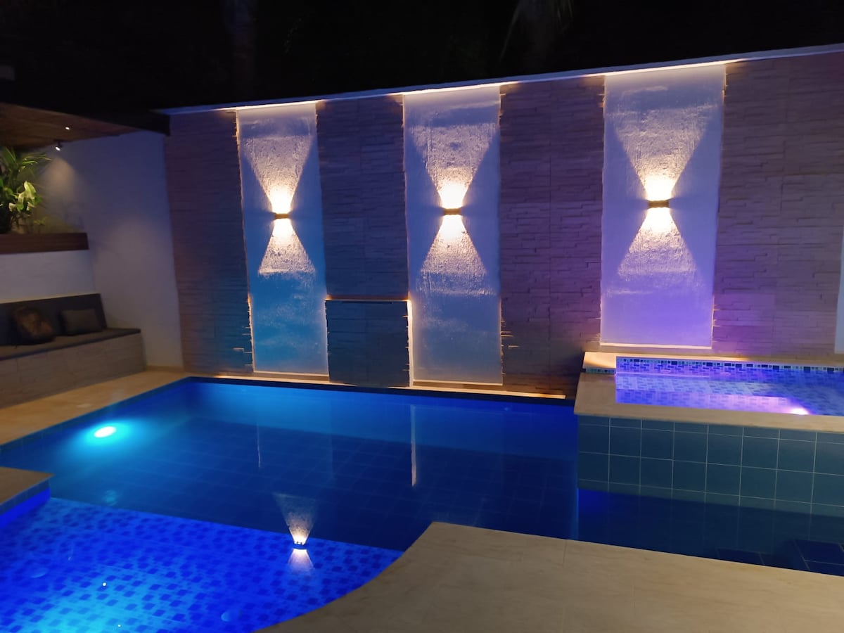 獨家水上區域(泳池和熱水按摩池)、綠地區、瓦斯烤肉架和烤肉桶(最多 12 人)。在入住期間,您可以享受安靜、舒適、寬敞、安全的環境,配備奢華的裝潢和全套設施,讓您放鬆身心,與家人和朋友共度難忘時光。