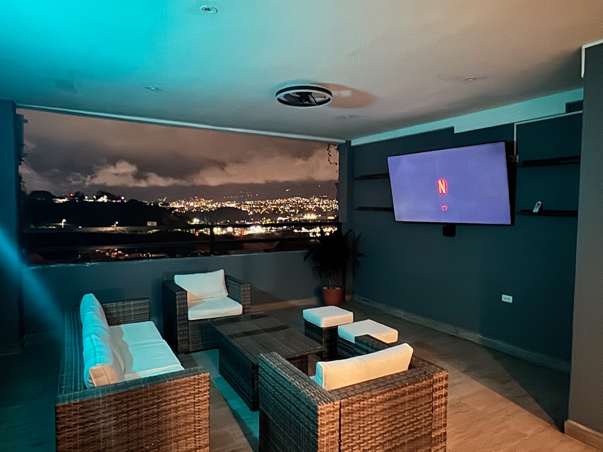位於洪都拉斯首都最獨特的區域,可俯瞰城市全景。從這座獨特建築的頂樓,享受難忘的觀光體驗。提供 24 小時保安服務和免費私人停車位。 無論您是出差還是休閒旅遊,都能享受到極佳的住宿體驗。 設施: 客廳配備 60 吋智慧電視。 主臥室 50 吋智慧電視 客廳空調 1 間房間有空調 2 間臥室空調 陽台