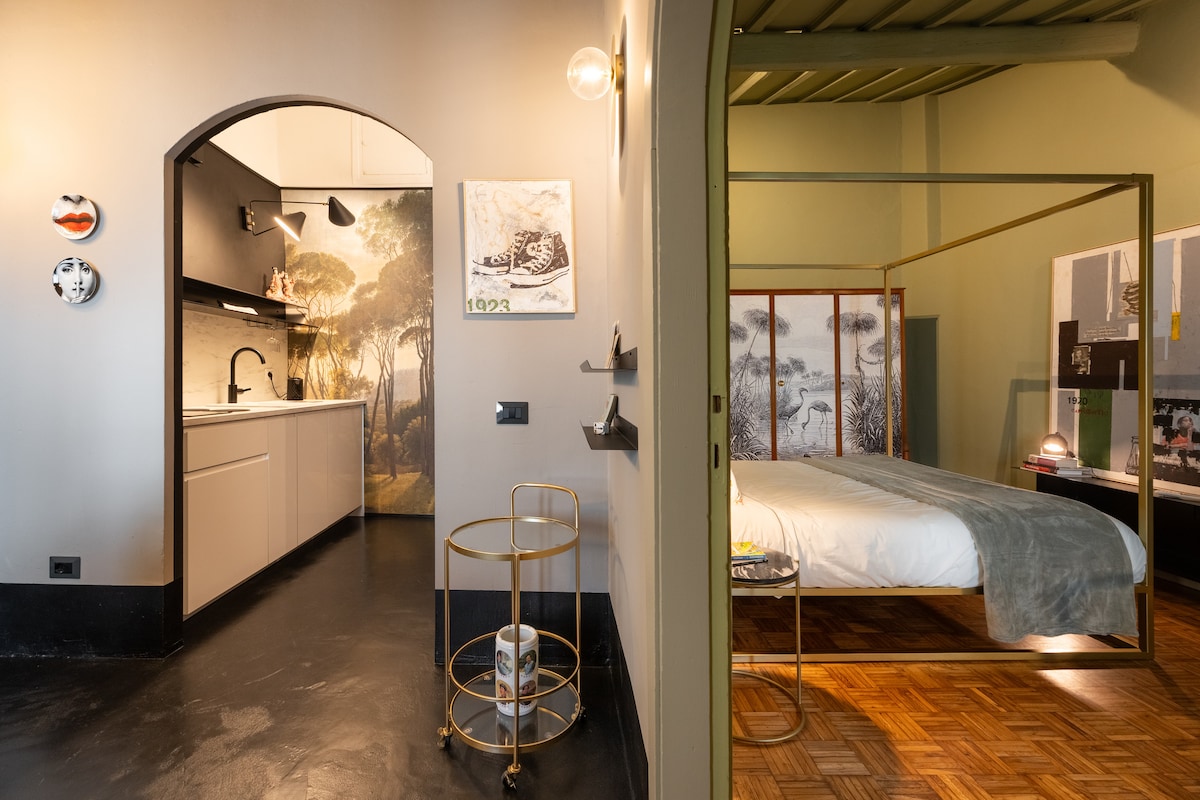 位於比薩市中心的舊塔樓房。 設備齊全的不鏽鋼廚房,配有咖啡機和水壺。 室內裝潢融合了木樑、鋼鐵和玻璃,配有吊床、設計師燈具、轉盤和豐富的藝術和插圖書籍圖書館。 臥室可通過內部樓梯進入,而公寓位於歷史建築的閣樓(三樓):樓梯有點陡峭,因此很遺憾,可能不是每個人都覺得舒適。