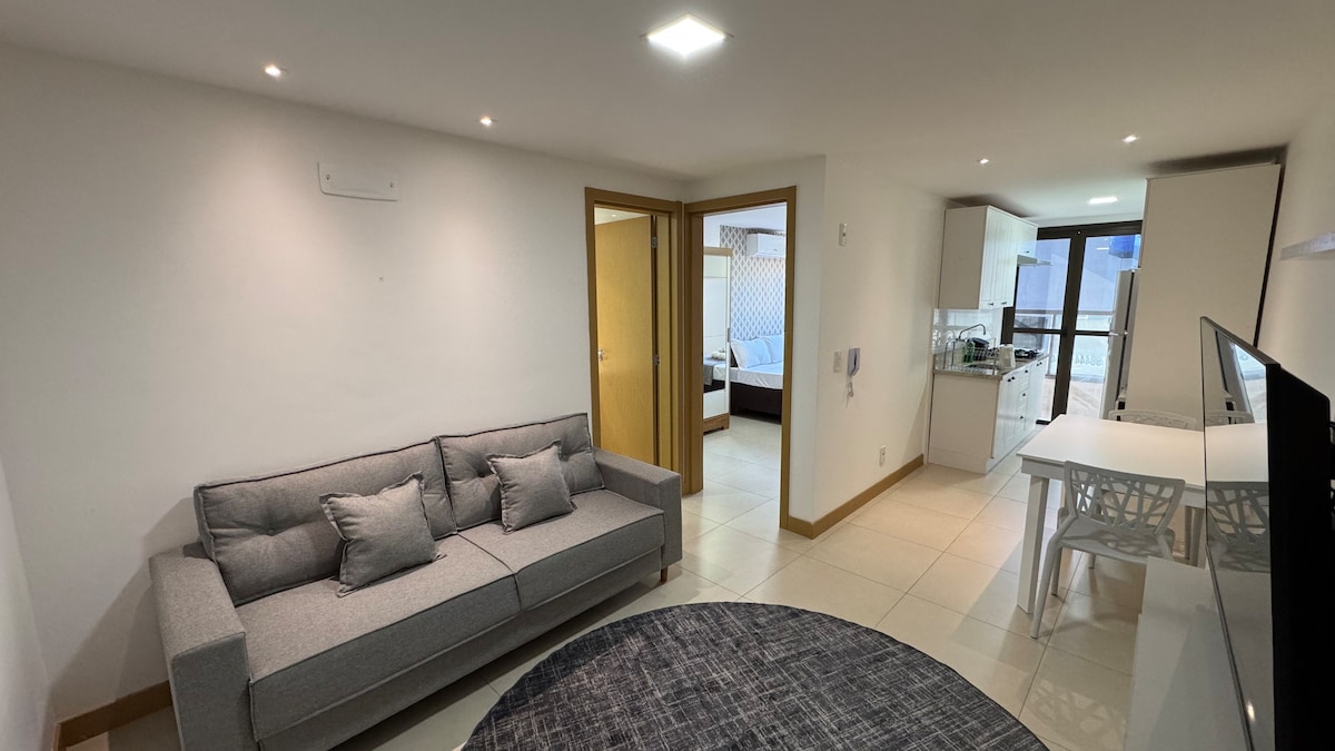 公寓位置非常好!距離慈善醫院半個街區,距離步行街兩個街區。此外,它靠近超市、餐廳、藥店和巴士站(包括前往 UFSM 的巴士站)。大樓有電梯和監視器。公寓配有全套廚房、洗衣機、Wi-Fi、智慧電視,可收看 400 多個國內和國際頻道,包括最佳體育、新聞和綜藝節目。