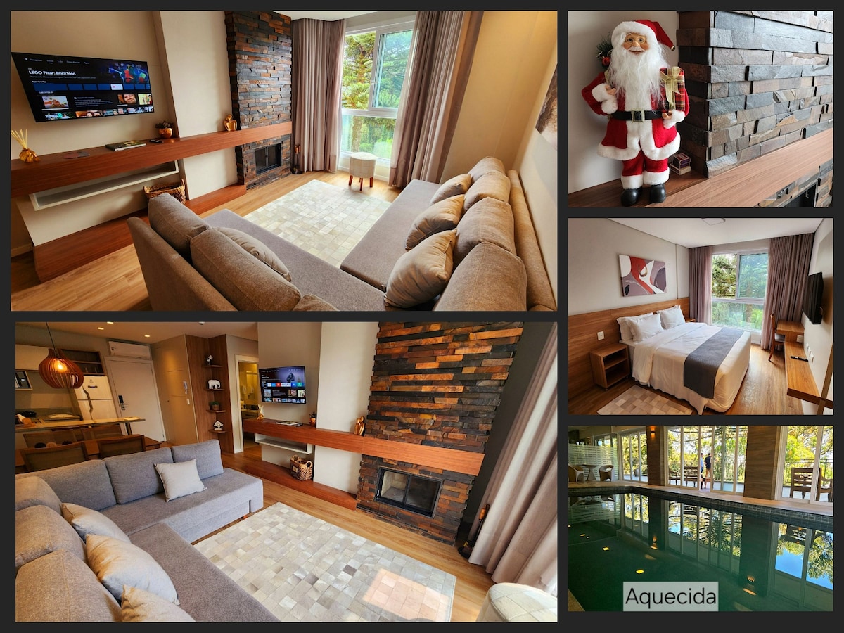 Hospede-se com muito requinte e conforto no maravilhoso Laghetto Resort Golden de Gramado. Hotel com serviço de quarto, café da manhã (pago à parte), estacionamento e uma ampla gama de serviços, como piscinas externas aquecidas com jacuzzis, piscinas térmicas cobertas, saunas, sala de jogos, brinquedoteca com recreadores, quadras poliesportivas,, academia de musculação, bares, lareiras, etc. Encante-se com o apartamento de 45m2 com quarto, sala, banheiro e cozinha para até 05 pessoas.