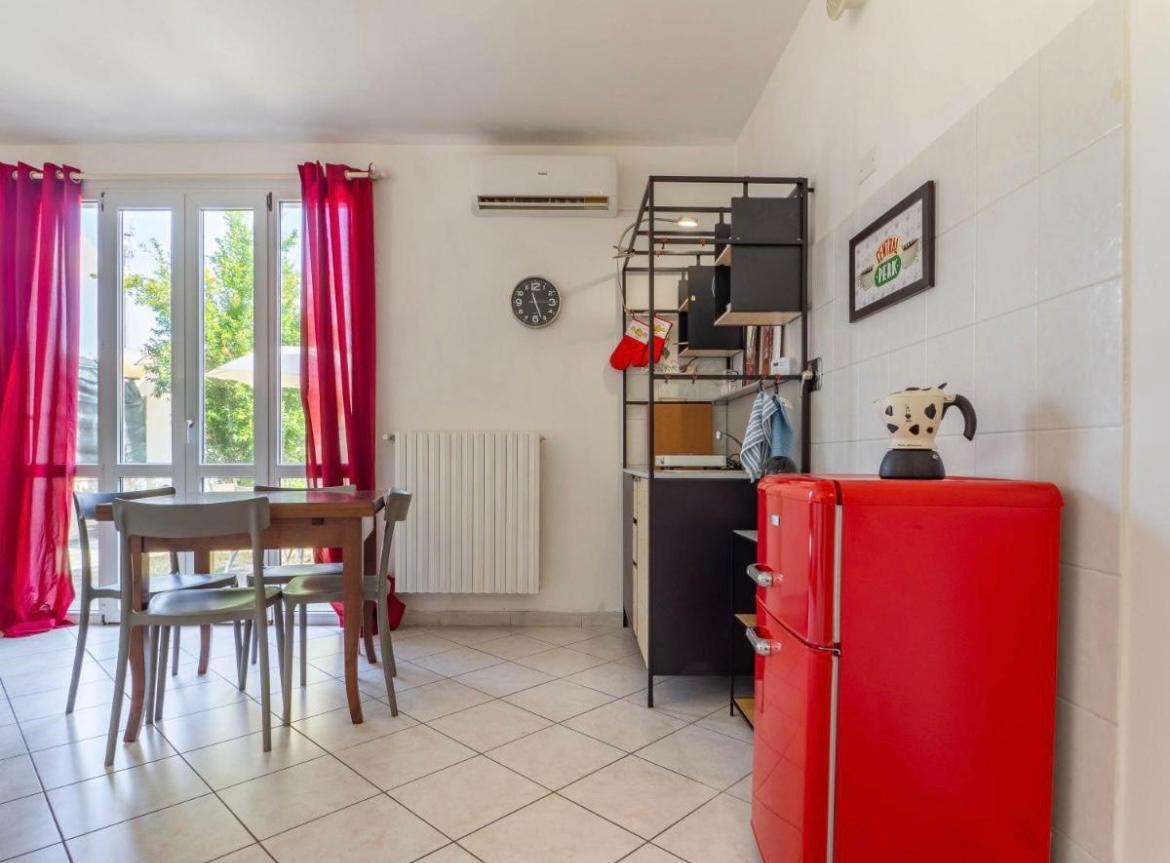 L'appartamento recentemente ristrutturato è al p.terra di un immobile di 3 unità, abitato dai proprietari e dagli ospiti. E' dotato di tutti i confort e dal soggiorno si accede direttamente ad un portichetto arredato e giardino ad uso esclusivo. Zona molto tranquilla, DENTRO LE MURA, a due passi dal Polo Chimico Biomedico Mammuth (Università) con parcheggio libero nella via e vie limitrofe.
