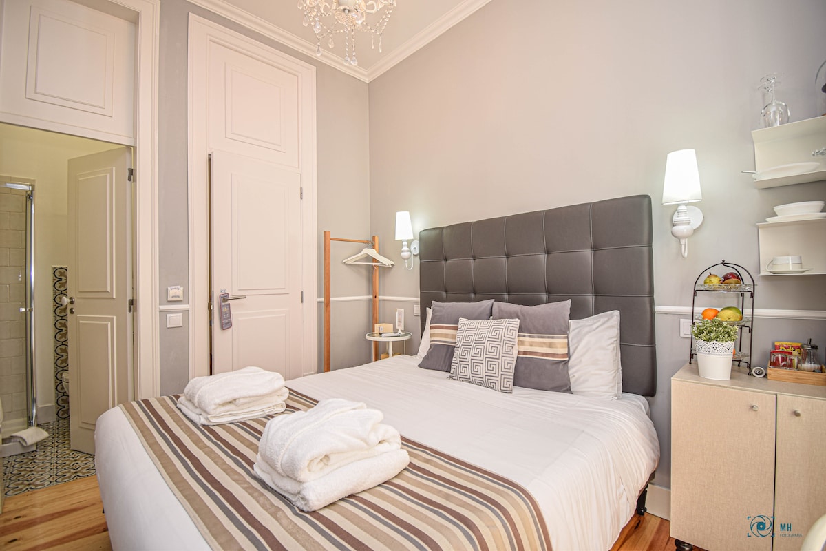 客房位於一棟3層建築的2º樓,配有電梯。有5間套房,每間配有獨立浴室。5間客房中的一間可以用作客廳。 典型的傳統廚房設備齊全,可容納7位房客的餐桌。距離著名的自由大道和地鐵站僅200公尺,距離羅西奧廣場和火車站距離辛特拉僅500公尺,距離觀景點50公尺-Jardim do Torel。 使用智慧密碼入住。 若要入住,請務必提供所有身分證件。