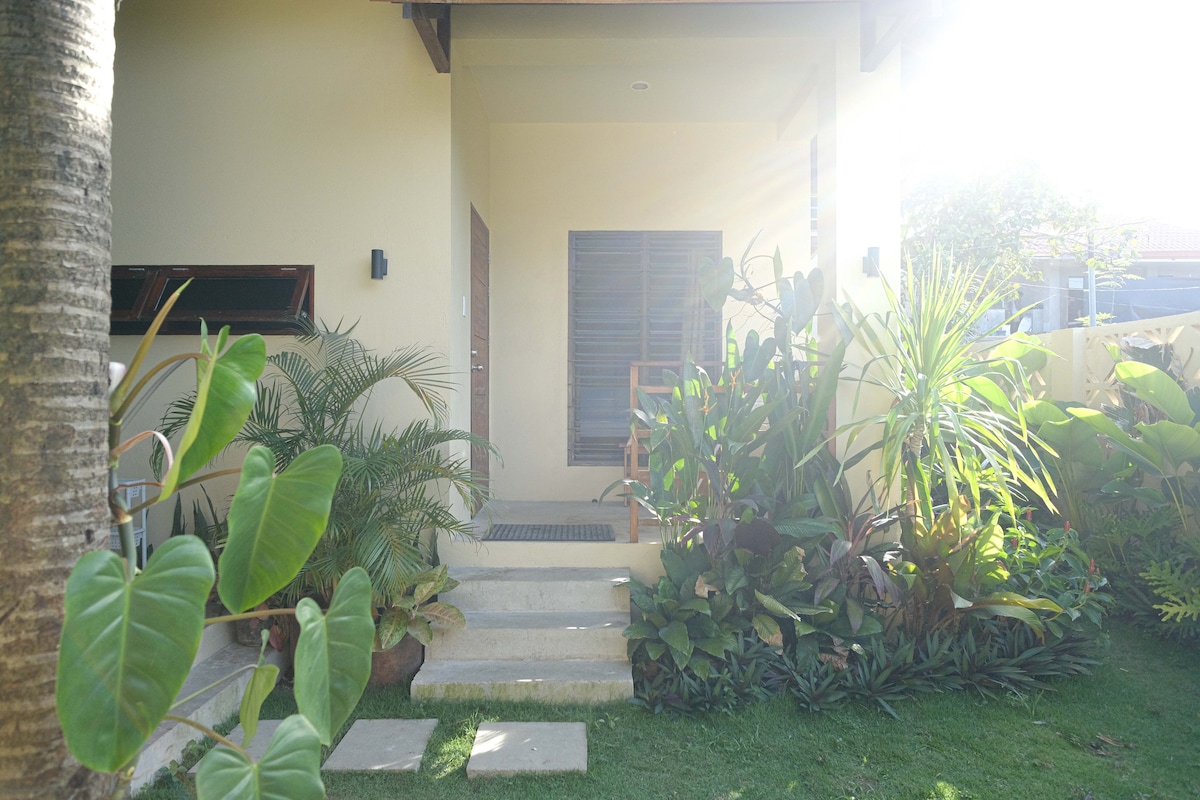 A cozy and homey space just 1 minute from the beach. This house includes: – Small kitchenette (rice cooker, kettle, fridge, single electric stovetop) – Private bathroom with hot water – Window-type aircon + electric fan – Rechargeable bedside lamps – A small speaker with a mic – A Comfortable queen-size bed with memory foam mattress – Surrounded by green plants and good vibes We live nearby and are happy to help with anything. Come as you are and enjoy island Life.