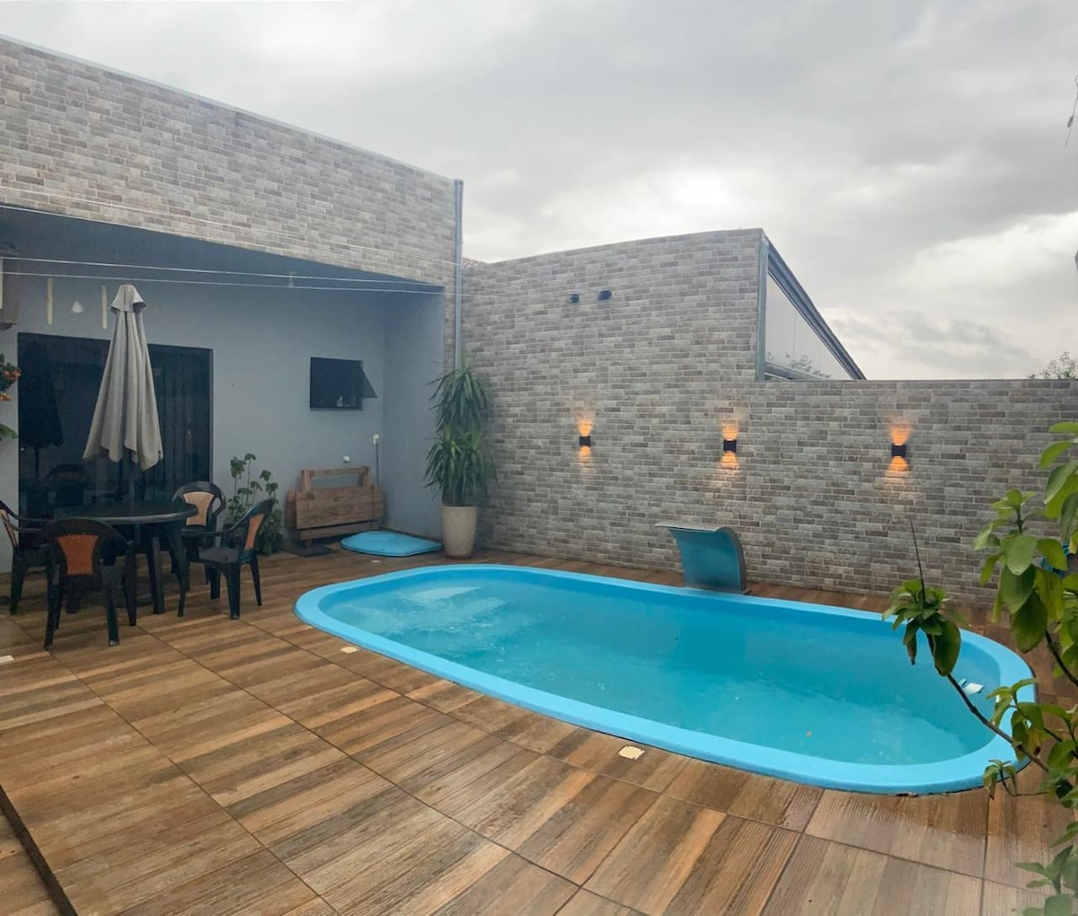 您的夢想度假就在這裡! 整套房子,有兩間臥室、浴室、客廳、帶淨水器的廚房、車庫和迷人的露臺。 享受空調的舒適,在我們的旋轉燒烤架上使用電視或燒烤放鬆身心。 在安靜的環境中,靠近聖克裏斯託市,是創造難忘回憶的完美場所。 來體驗特別時刻。 OBS:有水過濾器,自流井水由市政府處理(氯化)