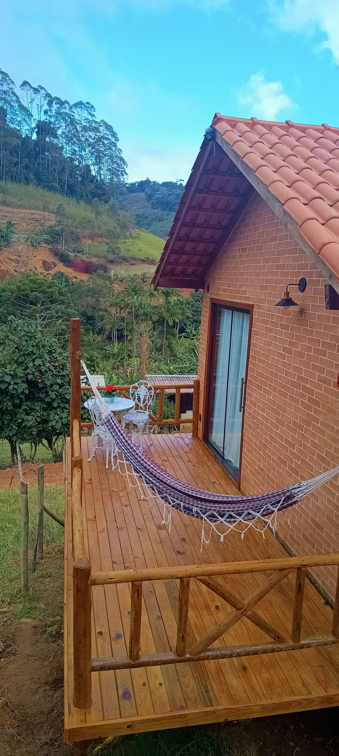 Venha curtir uma bela paisagem com clima agradável de montanha. Estamos localizados a 8km da cidade Santa Teresa e o acesso é todo por asfalto. CHALÉ PARA ATÉ DUAS PESSOAS. NÃO SERVIMOS REFEIÇÕES; - 1 quarto (1 cama casal), 1 banheiro; - 2 lençóis, 2 travesseiros, 1 cobertor, 2 toalhas banho e 1 rosto; - cozinha equipada com utensílios básicos(veja fotos), mesa, frigobar, cooktop duas bocas e air fryer; - Ventilador tipo torre e TV;