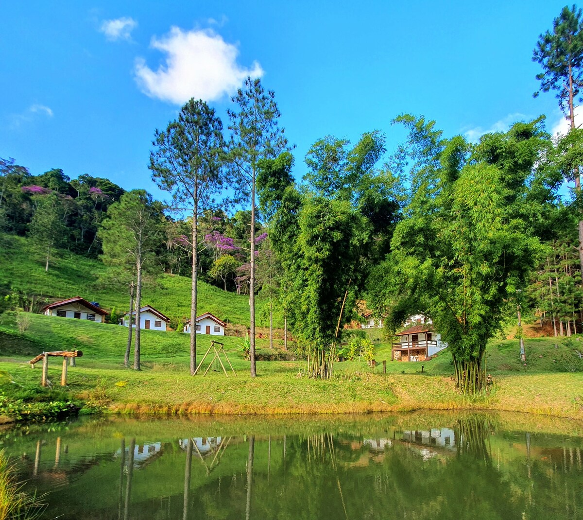 Chalé climatizado, cuidadosamente preparado para oferecer conforto e descanso em meio à natureza. Conta com cama Queen, sofá-cama e ambientes acolhedores, sendo ideal tanto para casais quanto para famílias. A propriedade é cercada por mata preservada, proporcionando silêncio, ar puro e contato direto com a natureza. Dispõe de área externa para convivência durante o dia, espaço para fogueira e lagos para pesca, perfeitos para momentos de lazer, contemplação e descanso. 8 km da rua do lazer