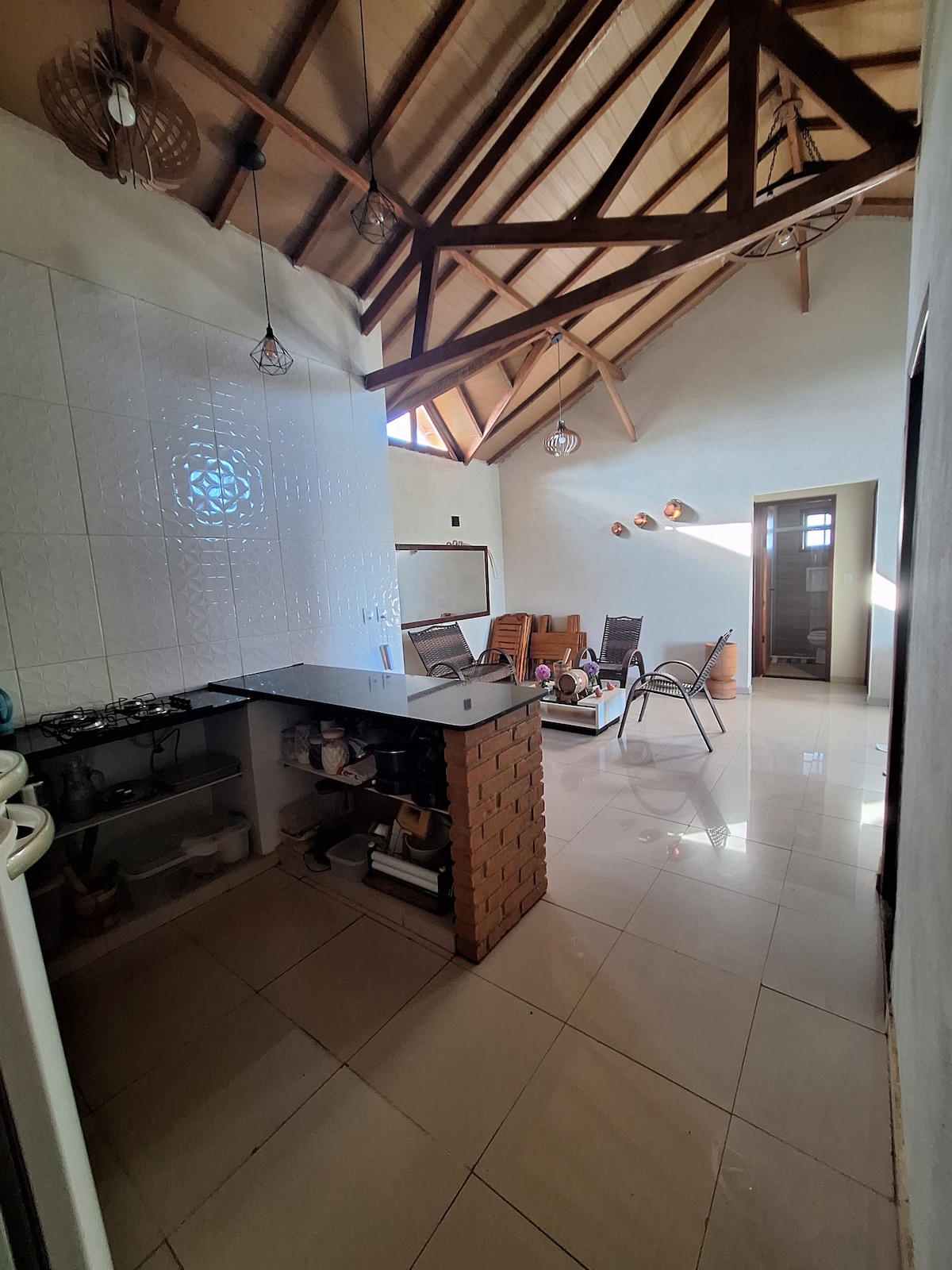 房子位於Tapera地點。 我們在保存完好的大自然中擁有充足的休閒空間。 在步道和瀑布中,是吉普車手、騎自行車者和家庭的理想目的地,他們在Serra de Ibitipoca中間尋求平靜與安靜。 我們提供毯子、枕頭、牀單和浴巾,可供10人使用。 我們協商人數較多,因為我們在房子裡有攤位和牀墊的空間。 完整的廚房,配有2臺冰箱、爐具、餐具、餐具、三明治機、三明治機、保溫器。
