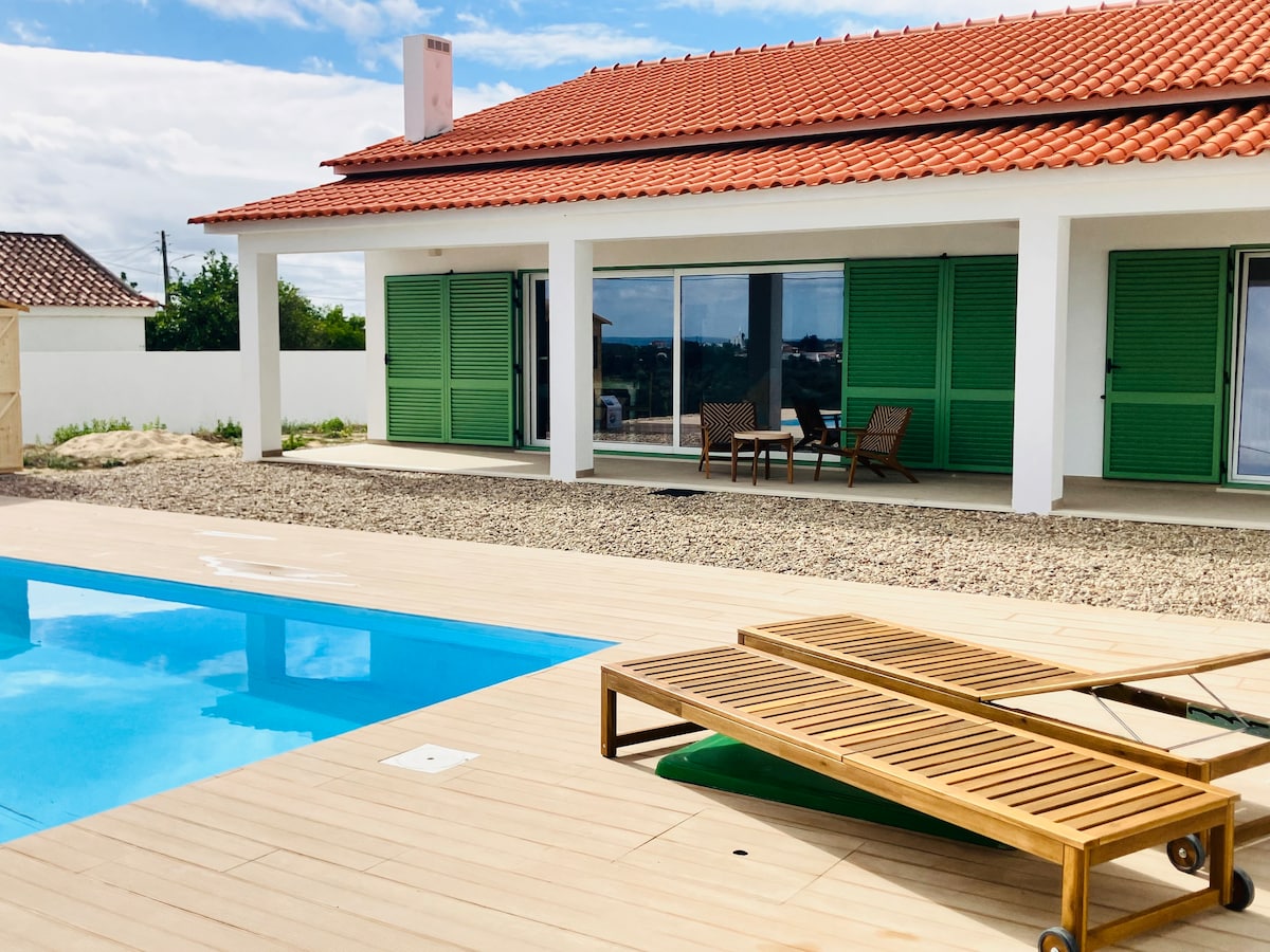 配備所有現代設備與服務的真正度假勝地。非常私人的現代風格別墅。開放式客廳,配有落地窗,讓您欣賞周圍農田和古老橄欖樹的獨特景觀。在外面,有一個高架無邊際泳池和一張大餐桌,可以欣賞到令人驚嘆的日落。位於一個小村莊,距離里斯本 45 分鐘,距離聖塔倫 6 英里。您也可以在周圍的物業之一進行美麗的騎馬或品酒。