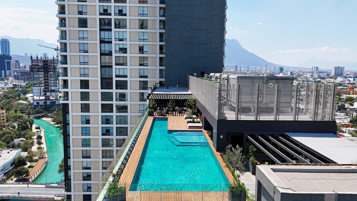 位於市中心最具戰略性的位置,在一個幾乎全新的公寓內,配備了非常好的設施,讓您在美麗的蒙特雷市的住宿更加愉快。由於地理位置優越,您可以參觀城市的主要景點。我們可以使用位於塔樓 30 樓的市中心最高的泳池和健身房,景觀壯觀,並設有共同工作區。