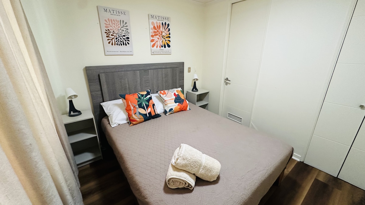 在這個現代、溫馨、充滿光線的地方放鬆身心。 位於ñuñoa ,距離Irarrázabal地鐵站和充滿活力的Barrio Italia僅幾步之遙,非常適合在安靜的環境中探索聖地亞哥和休息。 設計讓您有賓至如歸的感覺:設備精良、舒適和細節,讓您感受到賓至如歸的住宿體驗。 大樓提供遊泳池、洗衣房和停車位。 對於那些在城市中尋找位置、舒適和良好體驗的人來說,這是一個完美的住宿。在這個獨特而安靜的度假勝地。