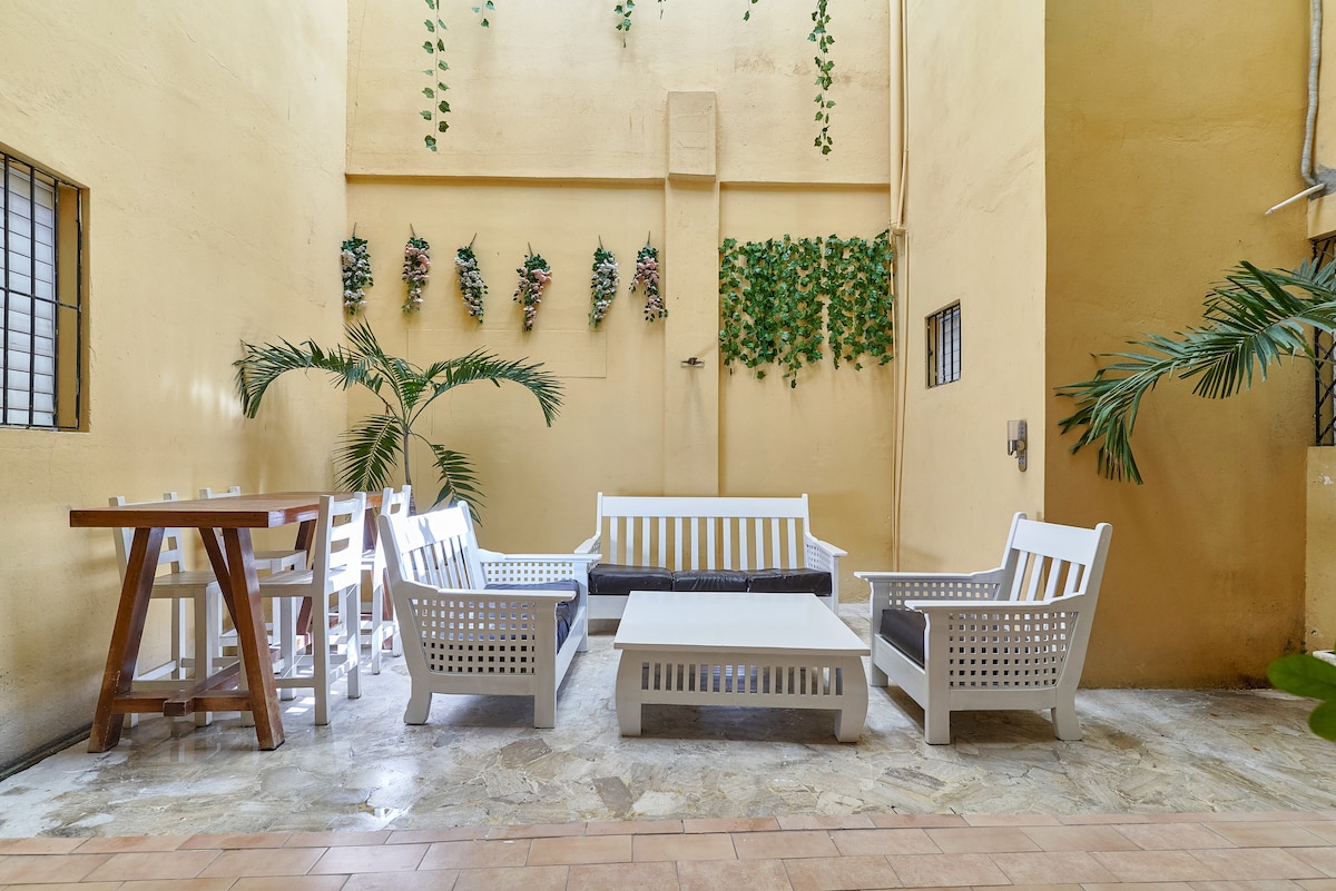 可提供額外服務($)。 這是一處位於聖多明哥殖民區中心的令人印象深刻的房源,距離美洲總主教座堂 (Catedral Primada de América) 不到 10 分鐘,周圍有城市的主要景點和景觀。 此房源是享受和體驗聖多明哥殖民城市的理想場所,靠近餐廳、博物館、歷史遺產和政府辦公室,讓您有賓至如歸的感覺。
