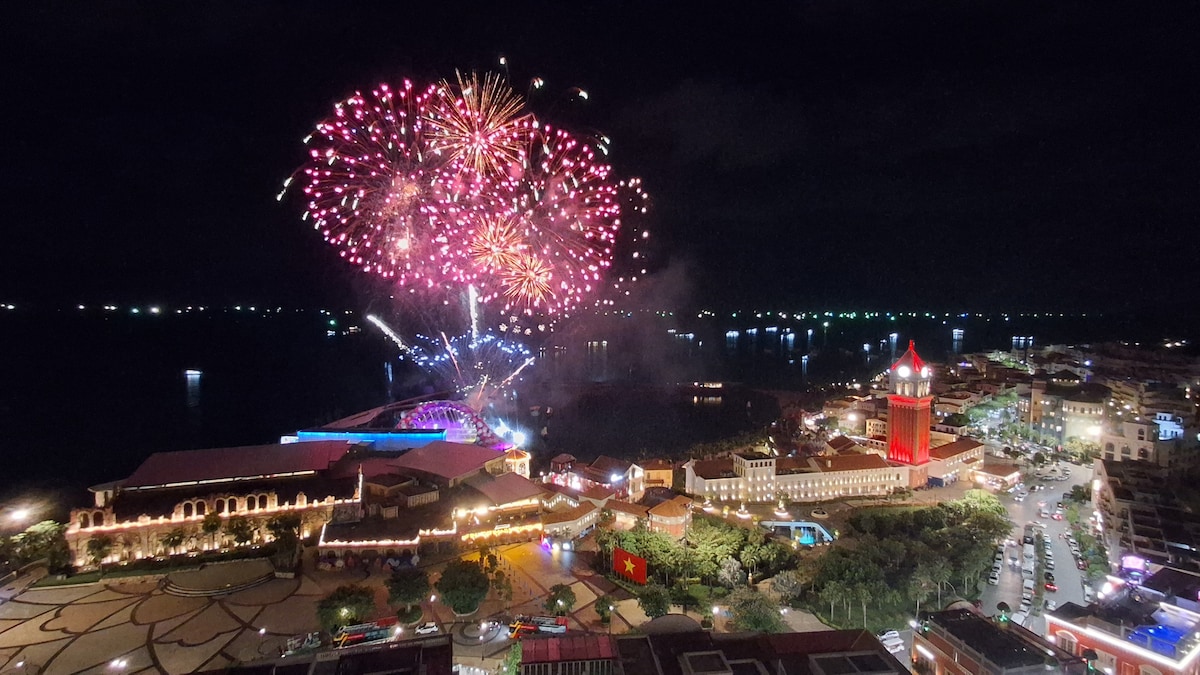 歡迎來到Varia Apartment -富國日落鎮(Sunset Town)的寬敞1間臥室公寓,享有壯麗的海景、私人陽台和夜間直觀煙花景觀。 旅人可享用屋頂泳池、健身中心、兒童俱樂部、室內遊樂區、免費WiFi和安全泊車設施。 公寓設有設備齊全的小廚房、現代化的浴室、冷氣和私人入住。 非常適合情侶、家庭或獨遊旅客,尋求舒適和難忘的日落。