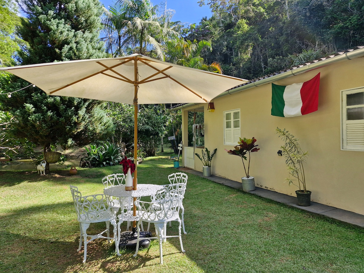Casa Belbellita是尋找自然、鄉村舒適和良好能量的理想度假勝地。 冬季有壁爐和加熱按摩浴池;夏季有戶外淋浴空間,距離公共瀑布只有500米。 享受鳥鳴、從所有窗戶欣賞綠色景觀和舒適的住宿。 我們距離世界上最大的露天藝術博物館之一的Inhotim 30公里。 立即預訂,享受在布魯馬迪紐的獨特體驗!