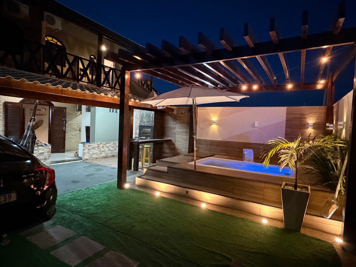 歡迎來到我們的家庭海灘別墅! 我們在這裡創造回憶和特殊時刻,與您分享! 我們的房子是一個避難所,有泳池、燒烤和許多吊牀供您放鬆身心。 它有5間臥室、3間套房和1個室外區域,最多可容納3輛車。 我們距離Grussaí海灘的3號郵局僅200公尺,距離商店和餐廳所在的Gastronomic Polo、SESC和Avenida Liberdade僅幾分鐘路程。 寵物友善的氛圍!