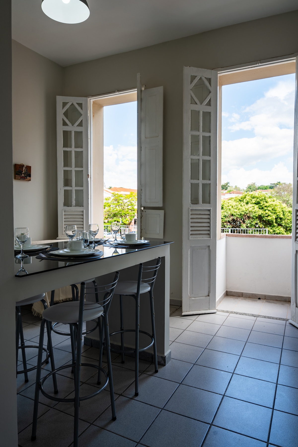 舒適的Collegiate Studio距離 聖安東尼奧聯邦大學(UFSJ)入口250公尺,距離聖若昂德爾雷伊最大的明信片聖方濟各教堂750公尺。完全為您的舒適而設計。配有雙人床、毛巾、床單、可控制的吊扇、智慧電視、帶有爐台的廚房、微波爐、冰箱、廚具、檯面和一個可俯瞰後院的大陽臺,帶來舒適和美麗的城市景觀。