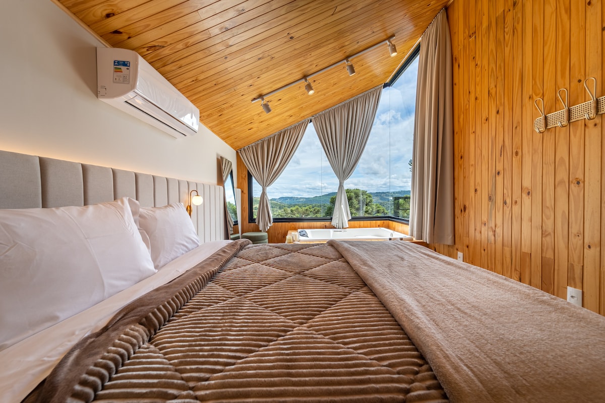 A Cabana LUZ是Villa Vida Cabanas的第二間,專為情侶、團體和家庭設計。 迷人、時尚和設備,為您提供難忘的日子。 配有燃氣暖氣、暖氣、冷熱空調和現代家用電器,讓您感到舒適。 Cabana Luz面積為180平方公尺,兩間套房和沙發牀、整合客廳、完整廚房、浴缸和鬱鬱蔥蔥的大自然中的美妙燒烤甲板最多可容納5人。