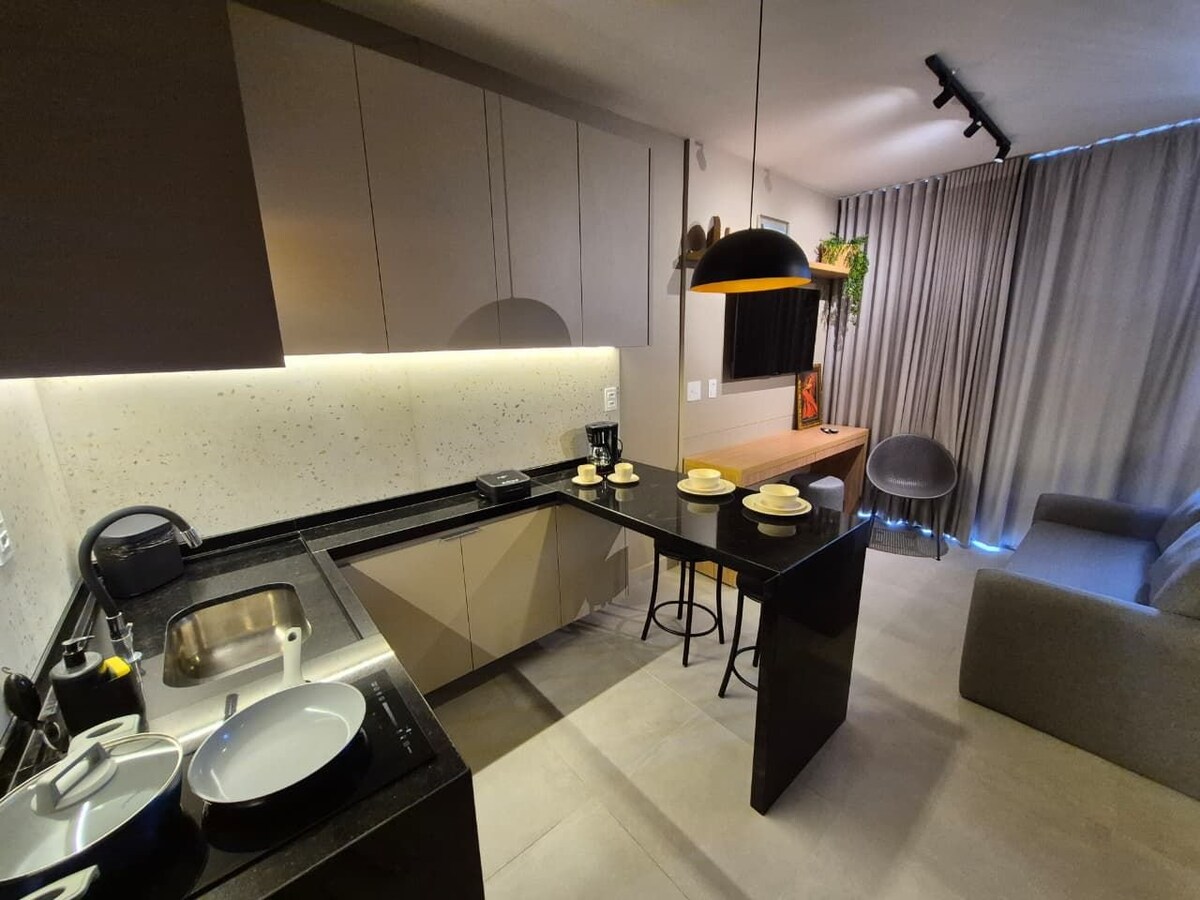 不僅僅是住宿,還是一種體驗!全新、現代且舒適! 位於南區,是城市的最佳位置,靠近主要的購物中心、醫院和餐廳。 公寓位於8樓,景觀優越,配有Wi-Fi、客廳和臥室,配有空調、標準雙人床、經過適當消毒的床單/桌布/浴巾、配有電磁爐、電器和餐具的全功能廚房。 一切都為了讓您和您的家人感覺賓至如歸!