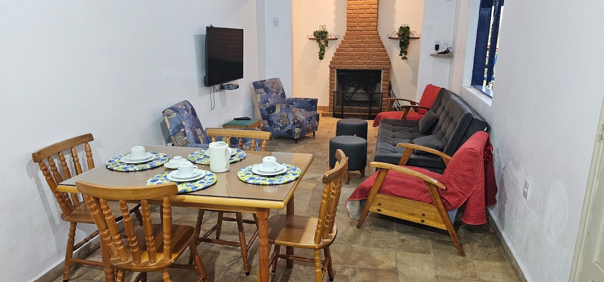 Casa com 03 suítes,Internet wi-fi ,sala de TV com lareira, sala de jantar, cozinha completa, area de lazer com fogão a lenha,churrasqueira, garagem para até 03 veículos próximo ao Parque das Águas e centro de São Lourenço disponivel para até 8 pessoas.