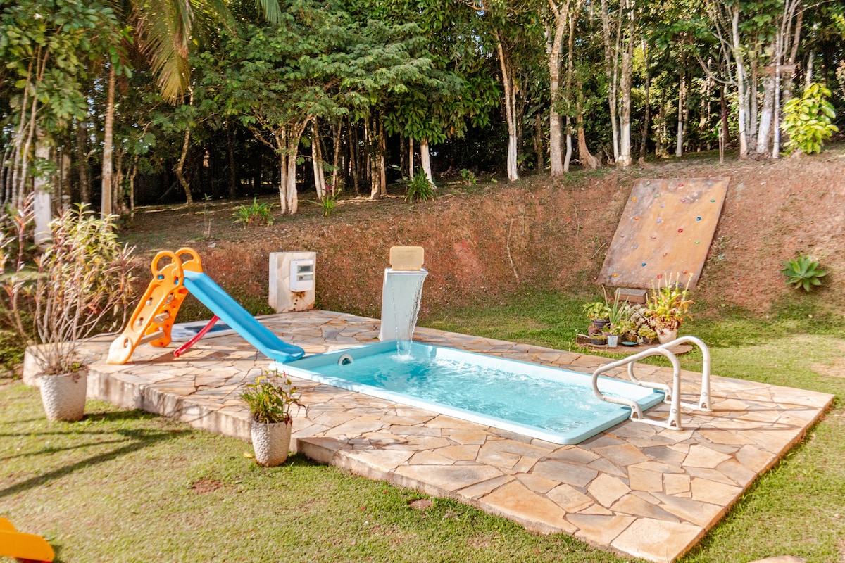 Somos uma área de preservação da Mata Atlântica ♻️ Temos um charmoso chalé estilo chalé, bem intimista perto da mata, ideal pra casais e pequenas famílias que gostam de Natureza, mas com fácil acesso a cidade O sítio tem wifi, jardins com redes, piscina com área de lazer, duchas da nascente, cozinha com forno a lenha, piscina natural na mata, trilhas ecologias, galinheiro, pomar e horta orgânica Aceitamos pet acordados e dispomos de serviços solicitados com antecedência