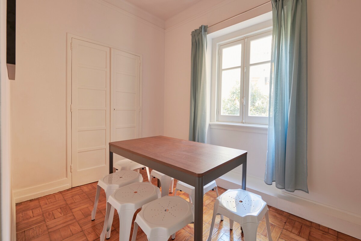 這間翻新的公寓擁有色彩繽紛的房間、不拘一格的傢具、開放式客廳、原創設計特色、戶外用餐區和俯瞰里斯本屋頂和水道風景的休息室 這個位置距離著名的28號電車和Rato廣場(地鐵)僅幾步之遙,靠近很酷的商店、令人愉悅的餐廳、綠地和花園。 此外,我們距離壯麗的埃斯特雷拉大教堂( Basilica da Estrela )也很近