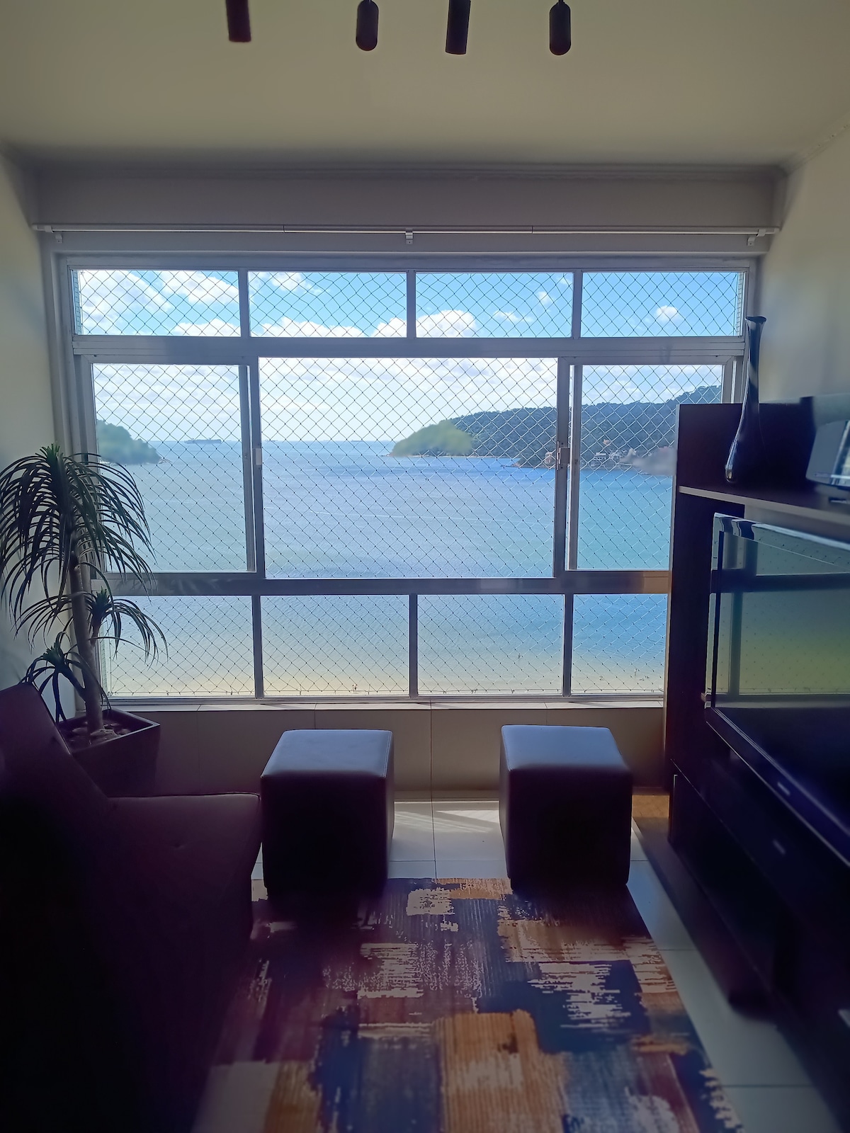 Venha sentir a experiência de se hospedar sobre o mar, com uma vista incrível, num apartamento aconchegante, confortável, limpo, seguro e completo, com tudo o que você precisa para relaxar e ficar apreciando a vista da janela. Localizado no topo da Ilha Porchat, em SV. Apto com ar condicionado, cama box casal, sofá cama, Smart TV com acesso ao Netflix, internet de alta velocidade, cozinha completa com todos os utensílios necessários para preparar refeições, e curtir a paz e tranquilidade.