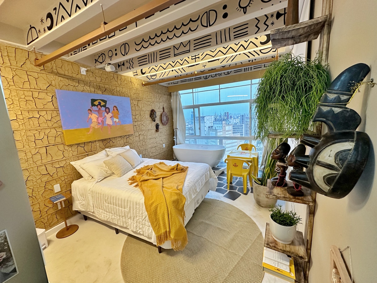 該項目受到薩爾瓦多的 Axé 商場啟發,將一個設計帶到科潘大樓的 26 樓,該設計參考了薩爾瓦多日常生活的各個方面。 公寓配有俯瞰城市的浴缸和 100 吋 Samsung Freestyle 螢幕 Simmons Studio Prime 床墊 無防護螢幕的單間公寓